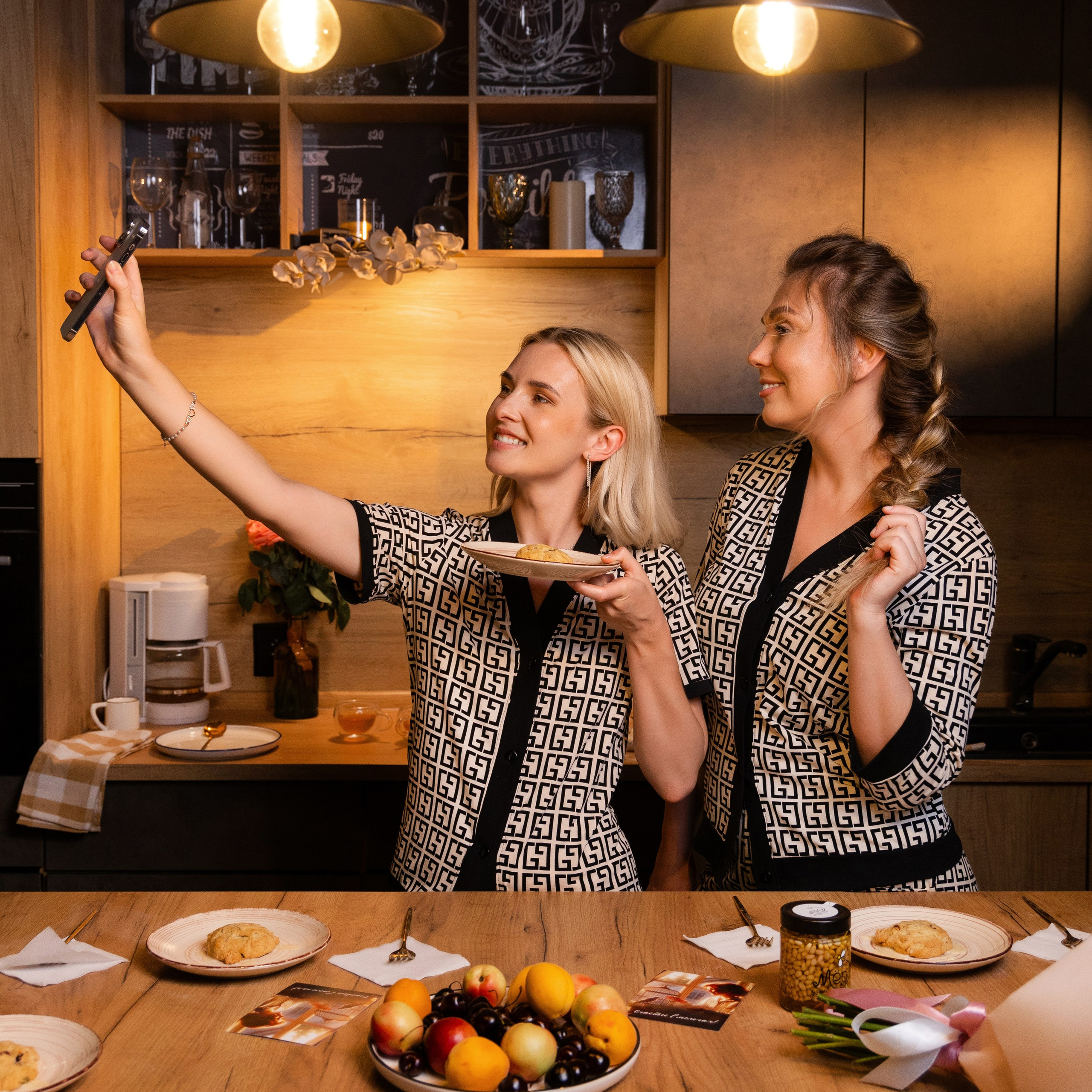 Съемка 6 артикулов пижам для маркетплейсов. Задача — создать уютную атмосферу утра подруг и показать, что пижама — это одежда не только для сна.